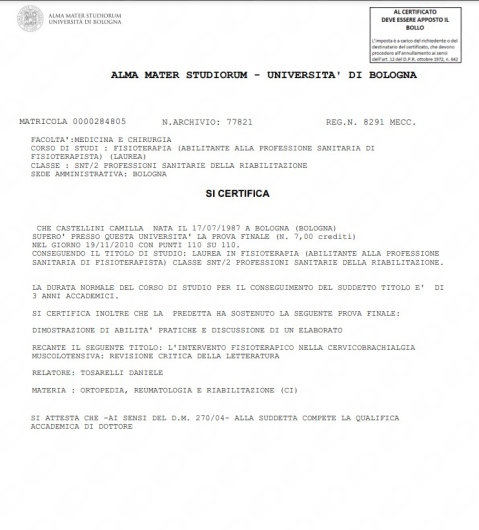 • Prestazioni di fisioterapia a domicilio - Dott.ssa Camilla Castellini • visita fisioterapica domiciliare •