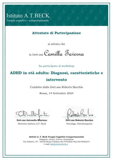Ho iniziato il mio percorso con la Dott.ssa Camilla Taverna sei mesi fa, in un periodo di grande difficoltà. Fin dal primo incontro, si è mostrata una professionista empatica e accogliente, capace di farmi sentire ascoltata e compresa. La sua attenzione ai dettagli e la profonda capacità di intuire i miei stati d'animo mi hanno aiutata a esplorare parti di me che non conoscevo e a trovare strumenti per affrontare le sfide quotidiane. Ogni incontro è un passo avanti verso una maggiore consapevolezza e serenità. Sono davvero grata per il percorso che stiamo facendo insieme e fiera dei traguardi raggiunti anche grazie al suo prezioso supporto.