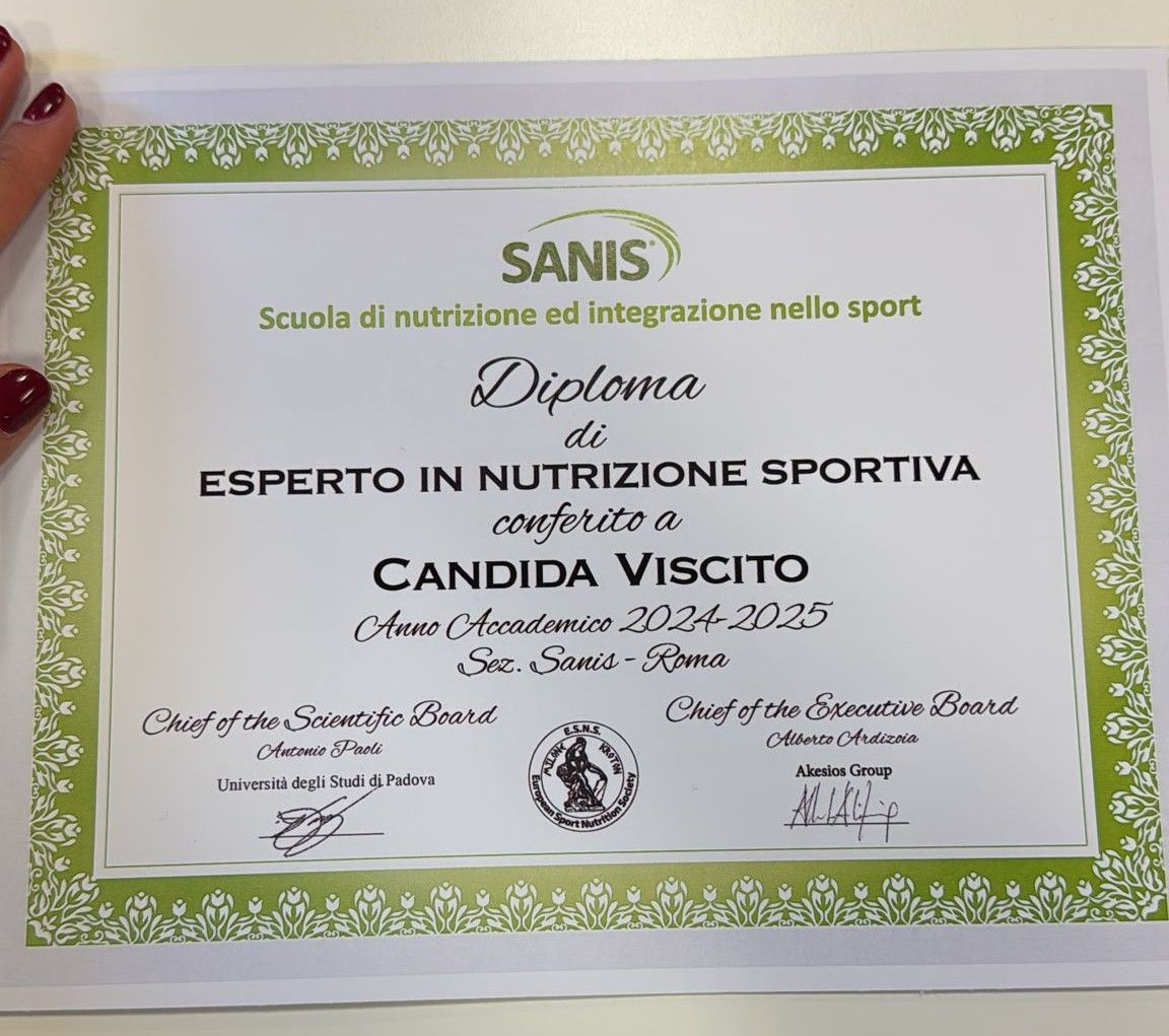 Ma non mi sono fermata lì: mi sono specializzata in nutrizione sportiva alla scuola SANIS di Roma e ho scelto di approfondire i disturbi del comportamento alimentare, con il corso ADEPO, perché il cibo non nutre solo il corpo, ma anche le nostre emozioni.