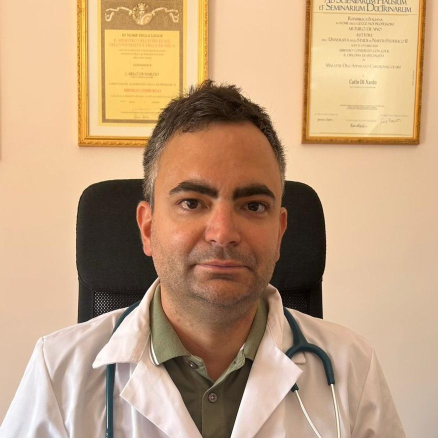 Sono il Dott. Carlo Di Nardo laureato nel Luglio 2011 all'Università Federico II. Ho conseguito il titolo di medico formato in medicina Generale presso la Regione Campania nel Dicembre 2016 e specializzato in Malattie dell'Apparato Cardiovascolare nell'Ottobre 2020 all'Università Federico II. Durante il mio percorso di formazione ho approfondito il campo delle Cardiomiopatie e mi sono specializzato nella metodica di Imaging dell'Ecocardiografia. In ultimo, ho avuto modo di approcciarmi alla Risonanza Magnetica Cardiaca.
