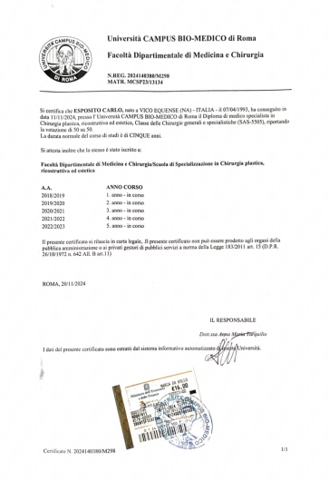 Mi sono specializzato in chirurgia plastica nella più ambita scuola di chirurgia plastica d'Italia, ovvero il Campus Bio medico di Roma. Ho operato nelle più importanti Università del mondo nell'ambito della chirurgia plastica estetica, come l'Università di San Paolo in Brasile, L' Università di Buenos Aires in Argentina, l'Università di Oporto e di Lisbona in Portogallo.