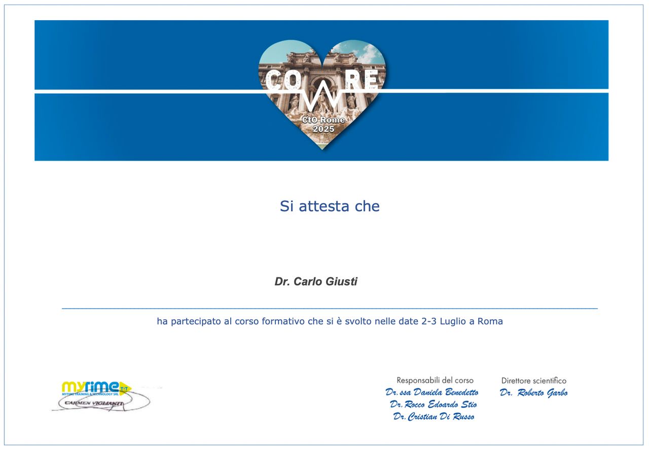 Hai avuto una visita con Dott. Carlo Giusti? Condividi quello che pensi. Grazie alla tua esperienza gli altri pazienti potranno scegliere il miglior dottore per loro.