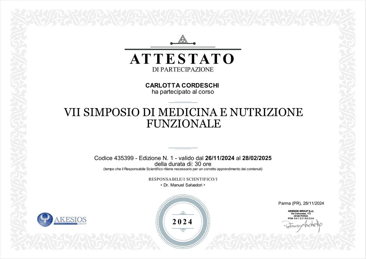 La mia formazione è iniziata presso l'università Cattolica del Sacro Cuore, dove ho conseguito la laurea in dietistica, per poi proseguire con la laurea magistrale in Scienze dell'Alimentazione (indirizzo nutraceutica) e con master di secondo livello in Approccio Multidisciplinare ai Disturbi del Comportamento Alimentare e Obesità.