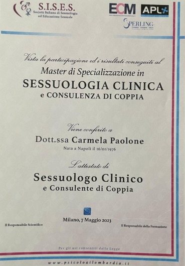Ho cominciato un percorso con la dottoressa Paolone da circa un mese, per affrontare alcuni problemi a livello di vita sessuale di coppia.