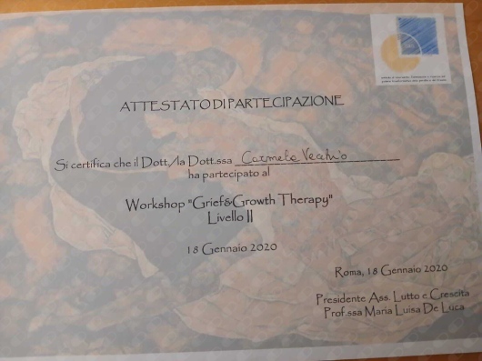 Ho acquisito una specifica formazione in “Grief &Growth Therapy” un approccio integrato di psicoterapia per il lutto, rivolta a chi si trova ad affrontare una esperienza particolarmente dolorosa e difficile di perdita.