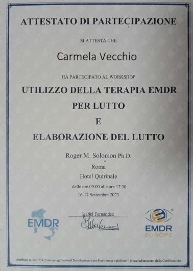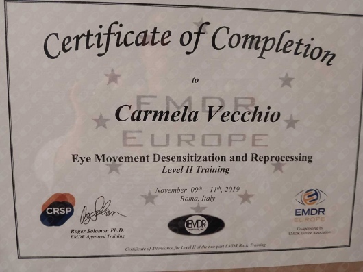 Terapeuta EMDR (Desensibilizzazione e rielaborazione attraverso i movimenti oculari), un approccio terapeutico utilizzato per la cura dei disturbi legati direttamente a esperienze traumatiche o particolarmente stressanti dal punto di vista emotivo.