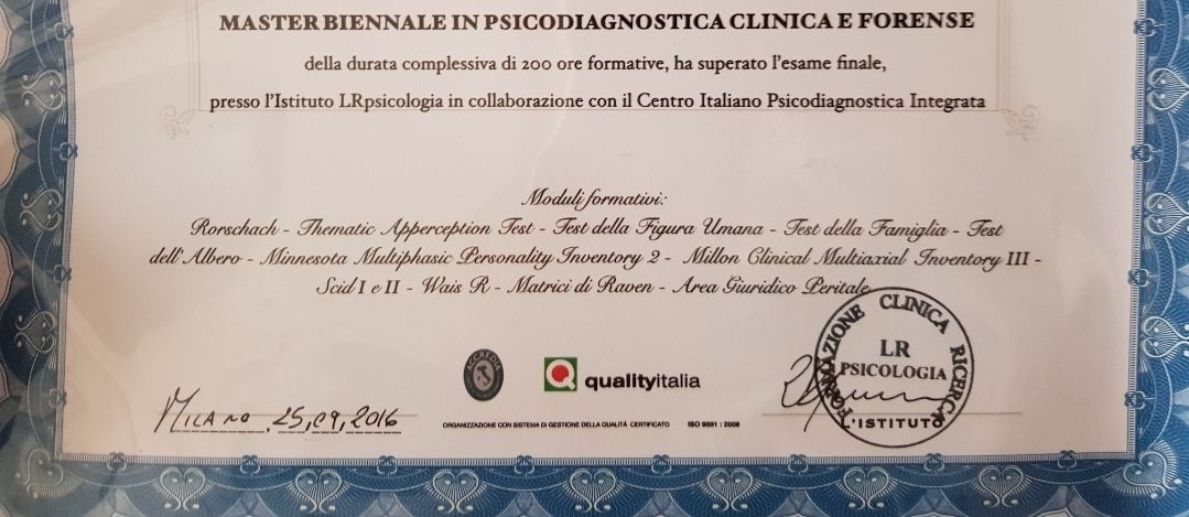 ◇ Valutazione testistica: Test di Rorschach, MMPI-2, TAT, Test grafici