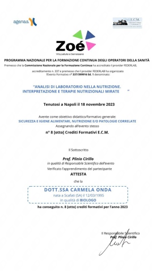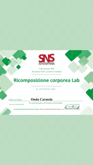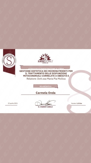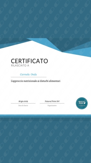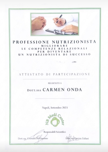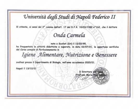 Attualmente sto perfezionando le mie competenze come Specializzanda in Scienza dell'Alimentazione presso il Policlinico di Napoli.