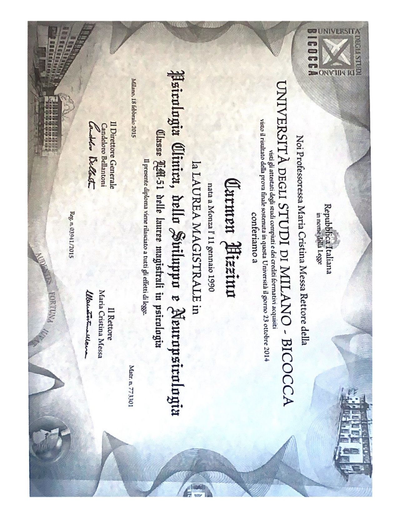 Sono psicologa, psicoterapeuta e neuropsicologa, attualmente specializzanda in consulenza sessuale. Negli anni ho sviluppato esperienza in ambito ospedaliero e di ricerca, per poi scegliere di dedicarmi ai miei pazienti lavorando "in bottega", ossia nel mio studio, mantenendo comunque un costante scambio multidisciplinare mediante la collaborazione arricchente con diverse équipe selezionate.
