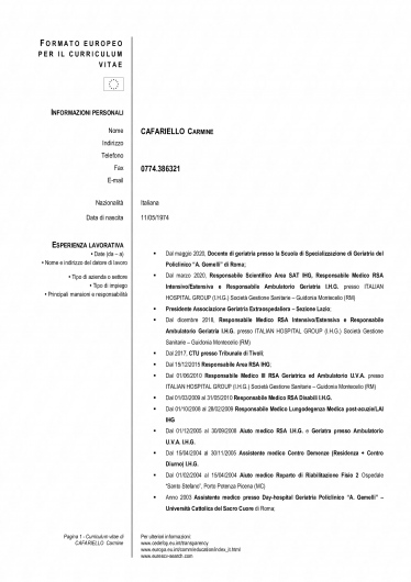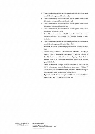 Nel 2003 Assistente medico presso Day-hospital Geriatria Policlinico "A. Gemelli-Università Cattolica del Sacro Cuore" di Roma.