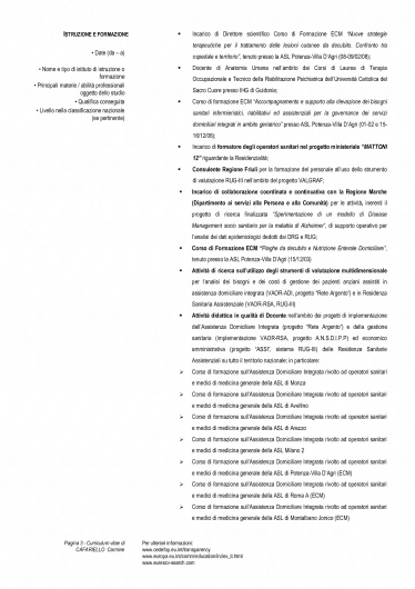 Attività di ricerca e didattica in qualità di docente nell'ambito dei progetti dell'Assistenza Domiciliare integrata e della gestione sanitaria ed economico amministrativa.
