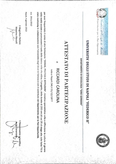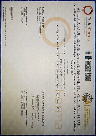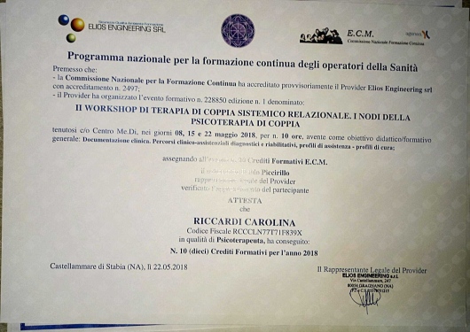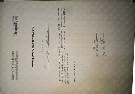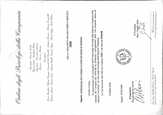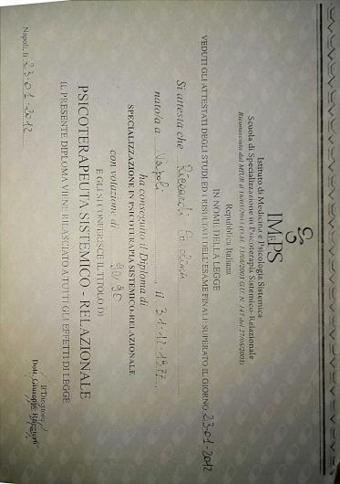 Dopo essermi laureata in psicologia ed aver ottenuto l'iscrizione all'albo degli Psicologi della Regione Campania ho proseguito il mio percorso di formazione per poter esercitare la professione di Psicoterapeuta.