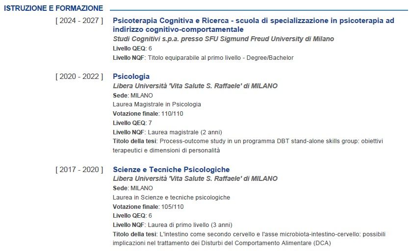 In questo ambito collaboro con l'Ospedale San Raffaele Ville Turro di Milano. Il trattamento psicologico cognitivo-comportamentale per i Disturbi dell'Alimentazione e della Nutrizione (DNA), secondo il modello CBT-E Multistep e i numerosi dati di ricerca dell'equipe del dr. Riccardo Dalle Grave, si basa sulla collaborazione multidisciplinare con altre figure professionali, come psichiatra e nutrizionista specializzati nei DNA.