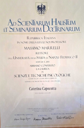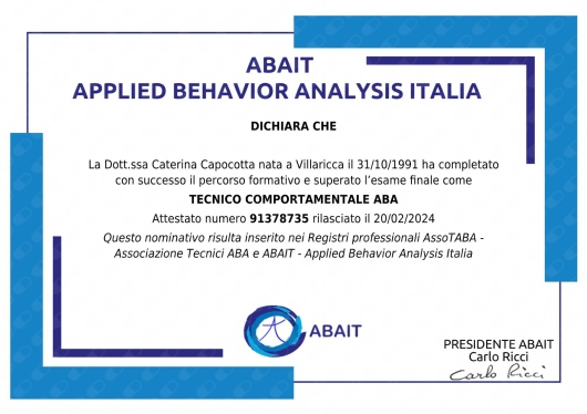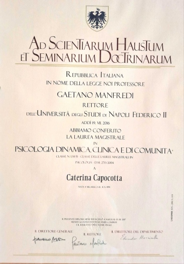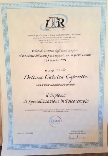 Sono la Dott.ssa Caterina Capocotta, specializzata in psicoterapia sistemica-relazionale e sto conseguendo un Master in tecniche comportamentali ABA. Il mio approccio si basa su una prospettiva integrativa che tiene conto della persona in tutta la sua complessità, e dei sistemi di cui fa parte. Ecco perché ho iniziato la mia esperienza professionale con l’età evolutiva per poi occuparmi ad oggi dei sistemi familiari, di coppia ed individuali. Credo fermamente che ognuno di noi possieda le risorse necessarie per affrontare le proprie difficoltà, e il mio obiettivo è supportarti nel riconoscerle e svilupparle.