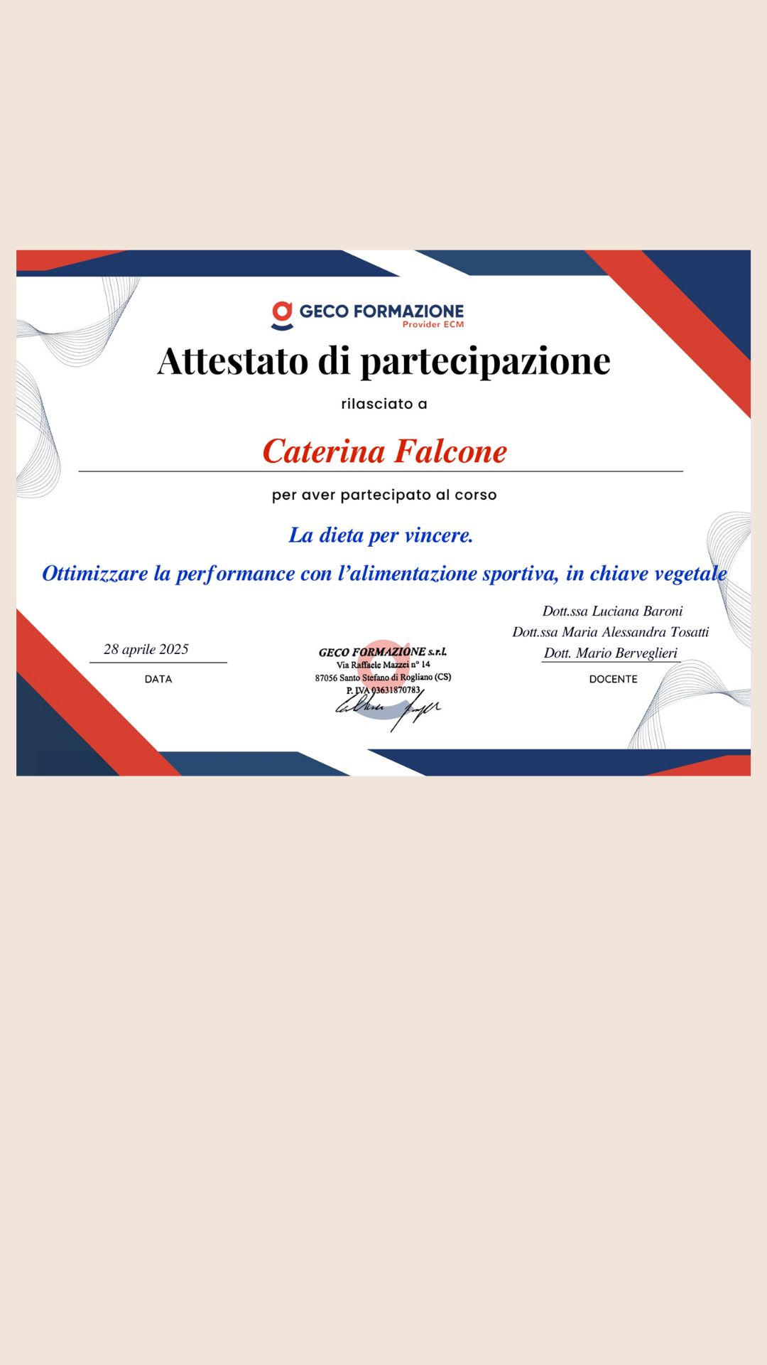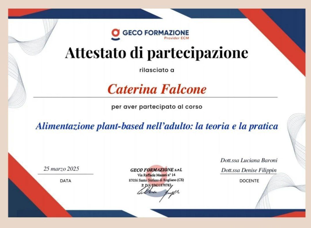 Sono Caterina Falcone, biologa nutrizionista laureata Triennale e Magistrale in Scienze della Nutrizione Umana presso il Campus Biomedico di Roma.