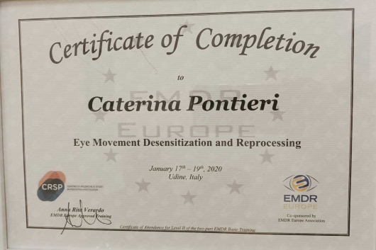 Ho frequentato il Master in “Clinica sistemica di coppia” presso Spazio Iris di Milano e sono abilitata alla pratica dell' EMDR (Eye Movement Desensitization and Reprocessing), 1° e 2° livello, tecnica che facilita il trattamento dei traumi e dei disagi legati ad esperienze emotivamente stressanti.
