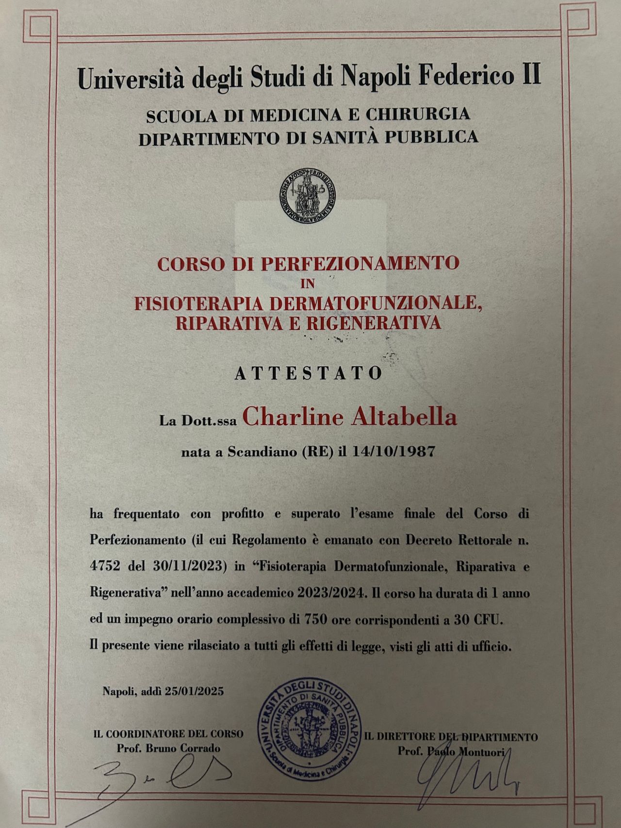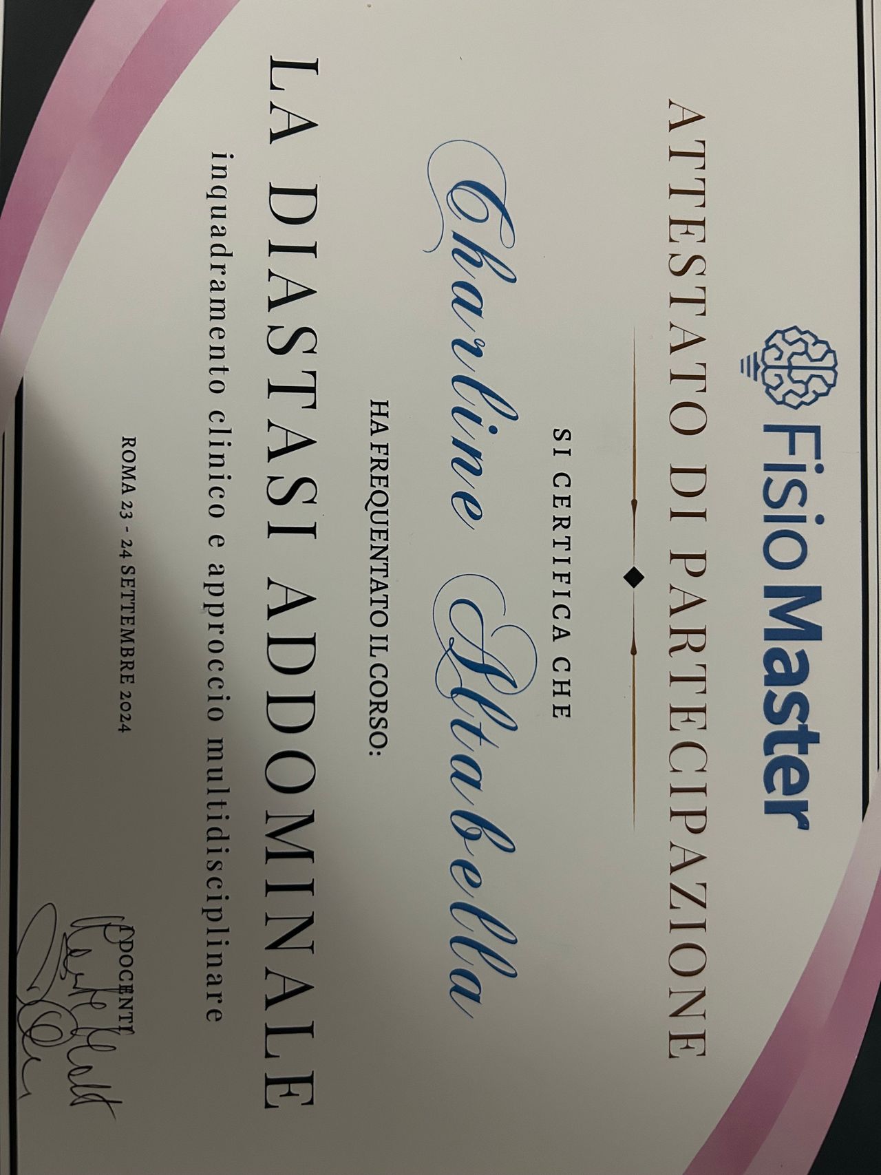 desidero esprimere la mia piena soddisfazione per il percorso fisioterapico seguito con la Dott.ssa Charline . Si è dimostrata una professionista altamente qualificata, attenta alle esigenze del paziente e capace di instaurare un rapporto basato su fiducia e competenza.