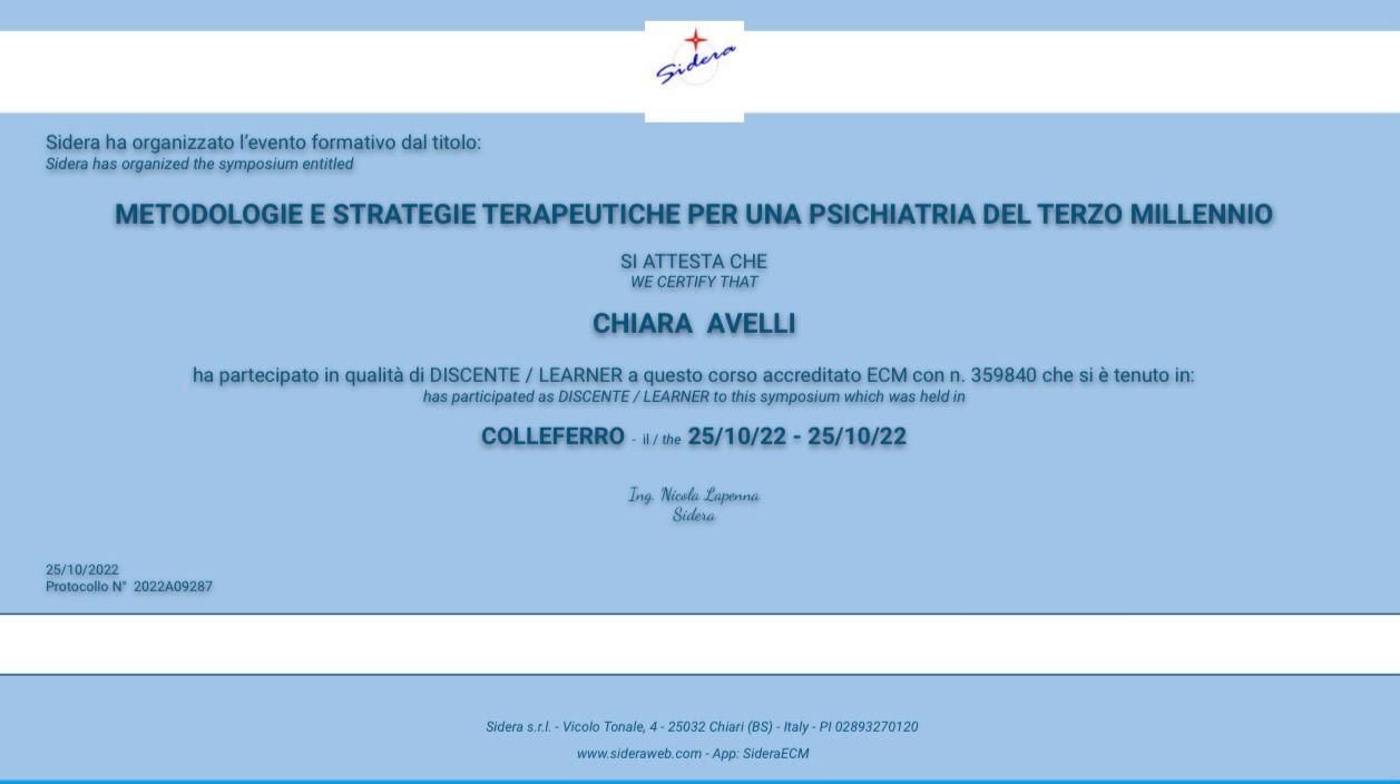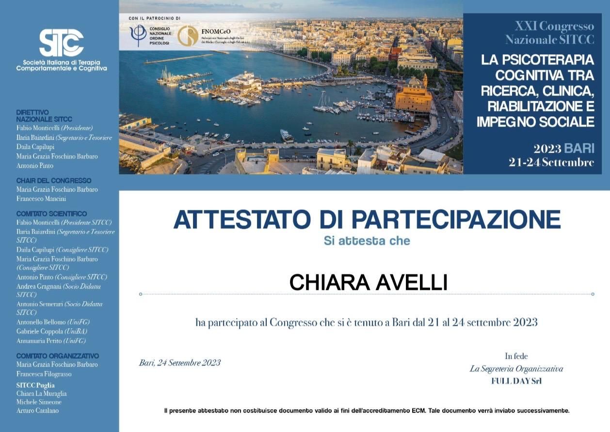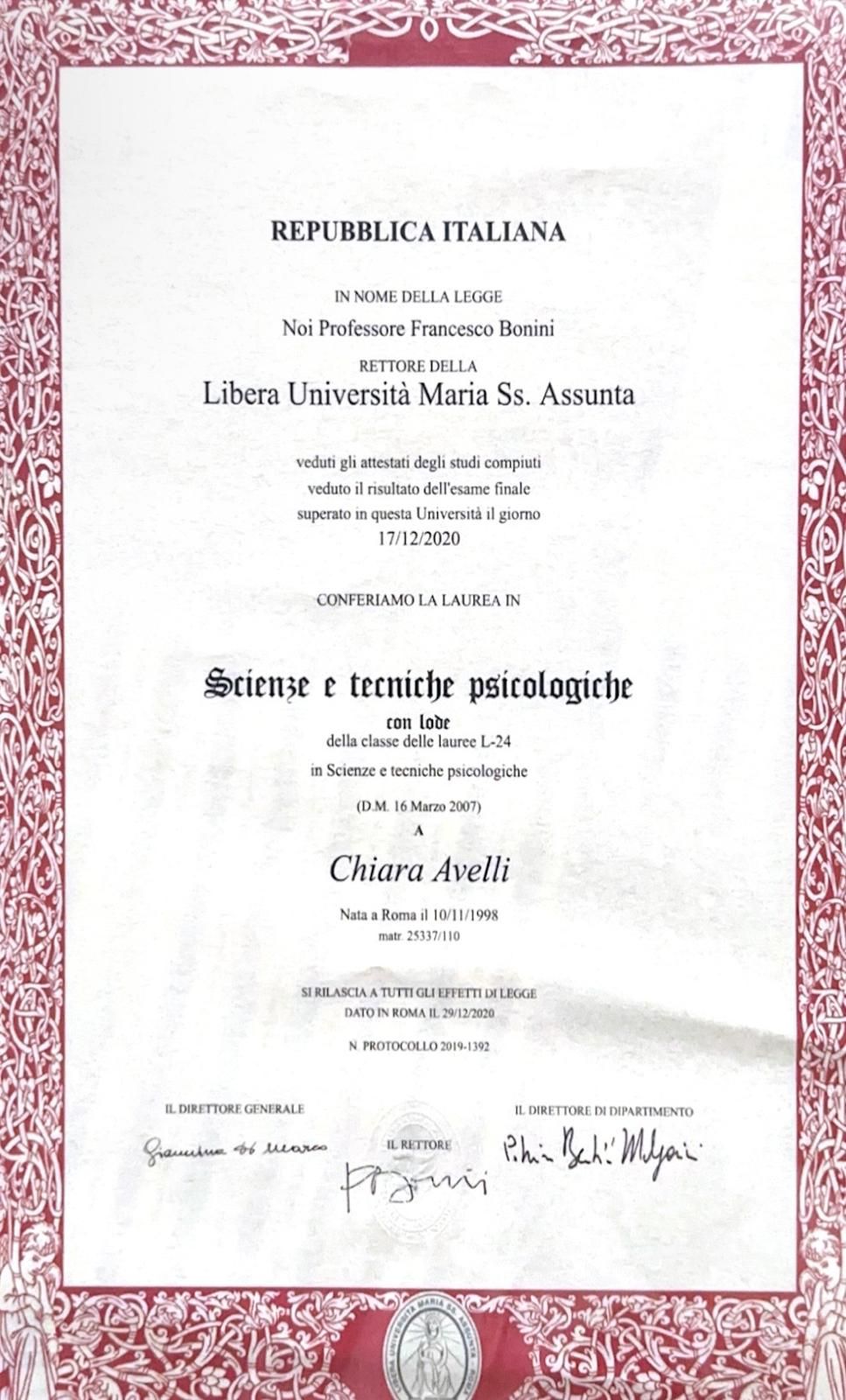 Sono la Dott.ssa Chiara Avelli, Psicologa Clinica e specializzanda in psicoterapia cognitivo-comportamentale presso la Scuola Italiana di Cognitivismo Clinico di Roma.