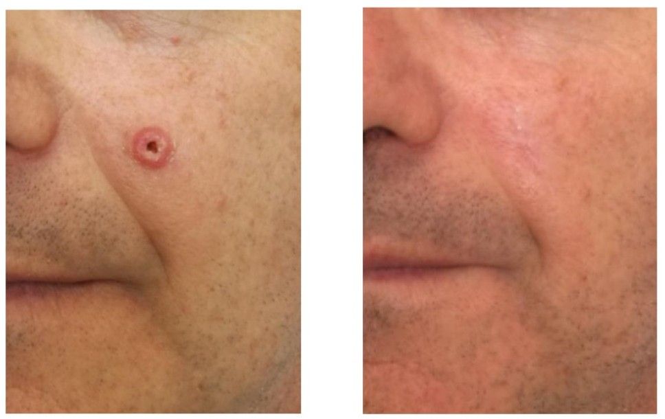 Asportazione chirurgica radicale di una neoplasia cutanea in anestesia locale con esame istologico.