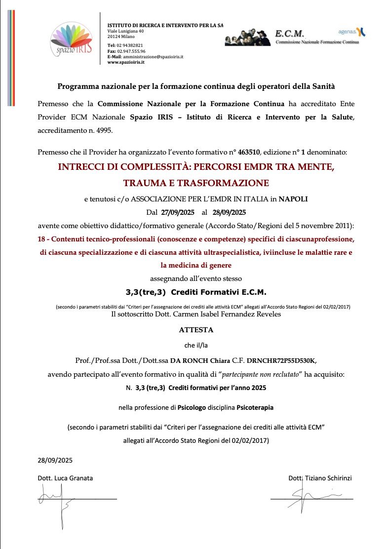 Sono la Dott.ssa Chiara Da Ronch, Psicologa, Psicoterapeuta con un’esperienza pluriennale nell’accompagnare le persone verso il benessere psicologico e la crescita personale. Mi dedico con professionalità al trattamento, sia in presenza che on-line, di problematiche come ansia, depressione, stress post-traumatico e dolore cronico, come cefalea ed emicrania, che possono influire profondamente sulla qualità della vita. Grazie a un'esperienza diretta di lavoro all'estero come expat e dipendente presso multinazionali, offro supporto online specializzato per le difficoltà di adattamento all’arrivo all’estero, durante la permanenza in loco o al rientro. Questo tipo di supporto richiede infatti competenze specifiche per affrontare le sfide psicologiche e relazionali legate ai cambiamenti culturali e personali. Per tutti i casi, il mio approccio è comunque personalizzato e integrato, combinando tecniche come il Training Autogeno Interocettivo (TAI), utile per ridurre lo stress e riequilibrare mente e corpo, e l’EMDR, una metodologia innovativa ed efficace nel trattamento di traumi e disturbi legati allo stress, e non solo. Attraverso consulenze individuali e di coppia, offro uno spazio sicuro e accogliente dove esplorare emozioni, affrontare difficoltà e sviluppare strategie efficaci per migliorare il benessere emotivo e mentale. Inoltre, eseguo valutazioni neuropsicologiche per monitorare le funzioni cognitive e fornire un supporto completo. Il mio obiettivo è quello di favorire il recupero emotivo, la crescita personale e un maggiore equilibrio psico-fisico. Per ulteriori informazioni, è possibile visitare il mio sito web: https://chiaradaronch.weebly.com/ e https://chiaradaronchpsicologaonline.weebly.com/ Sarà un piacere accogliervi e accompagnarvi nel vostro percorso verso il benessere.