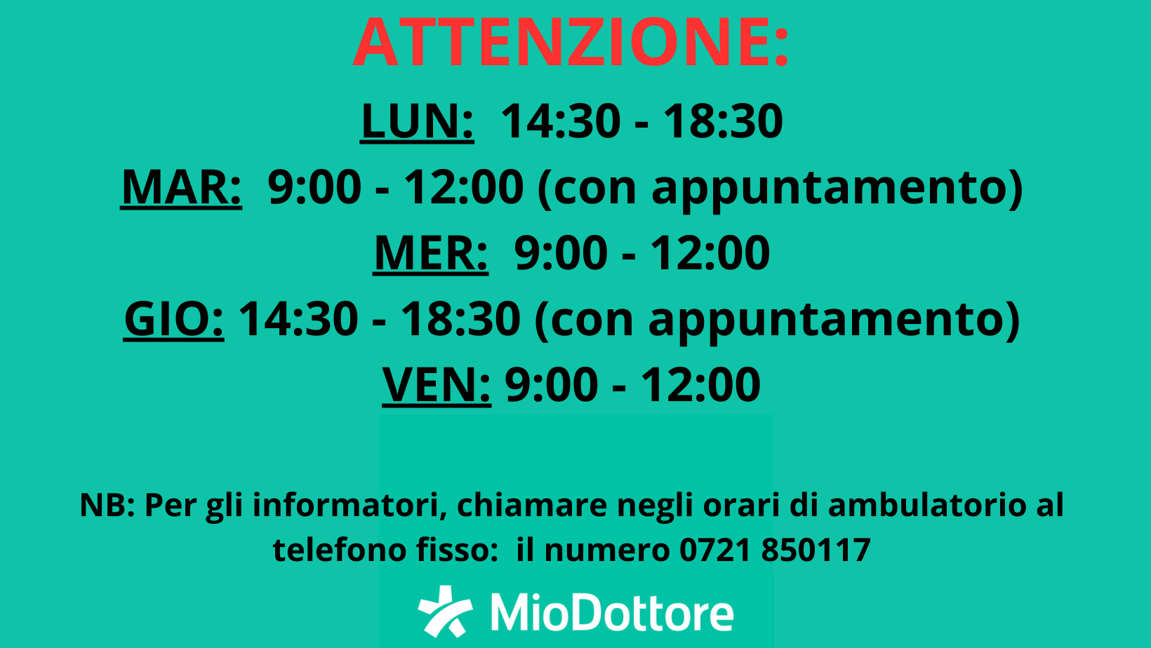 Il martedì e il giovedì si riceve su appuntamento.
