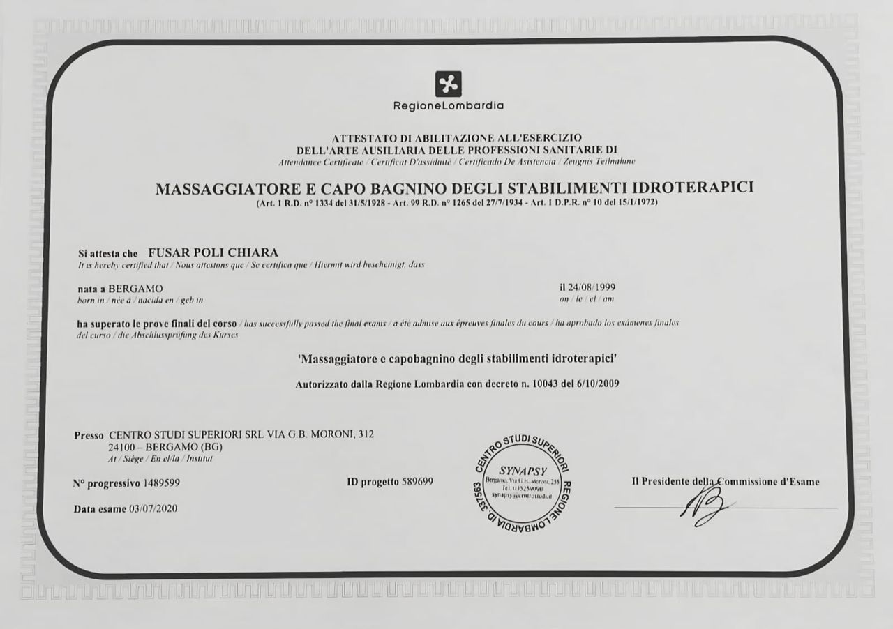 Sono Chiara Fusar Poli, Massoterapista dal 2020.