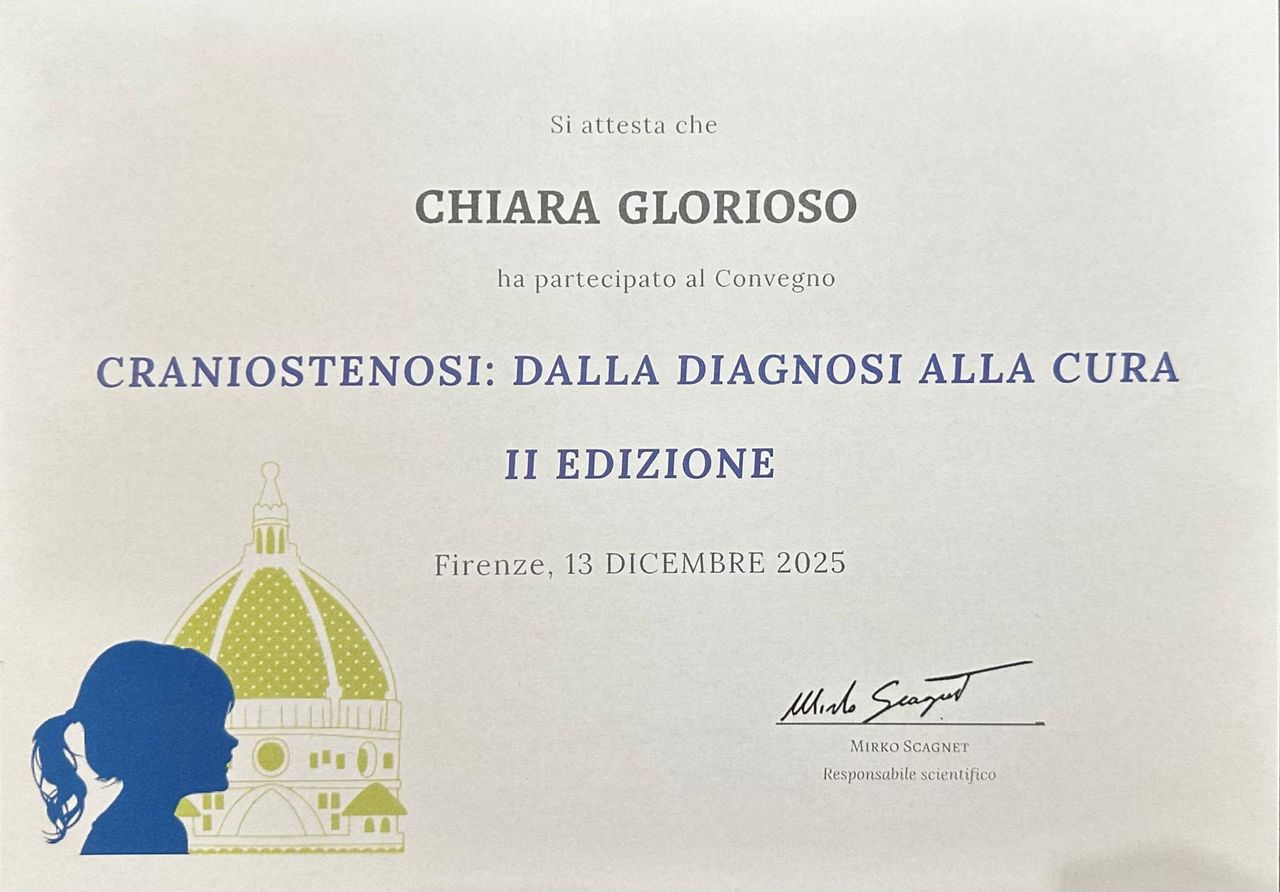 A giugno 2023 ho effettuato un tirocinio pediatrico presso l’azienda ospedaliera universitaria Meyer di Firenze, eccellenza nazionale per la pediatria. Nel 2024 ho partecipato a vari corsi relativi al metodo FSC del Dott. Castagnini per la facilitazione dello sviluppo neuropsicomotorio nei bambini.