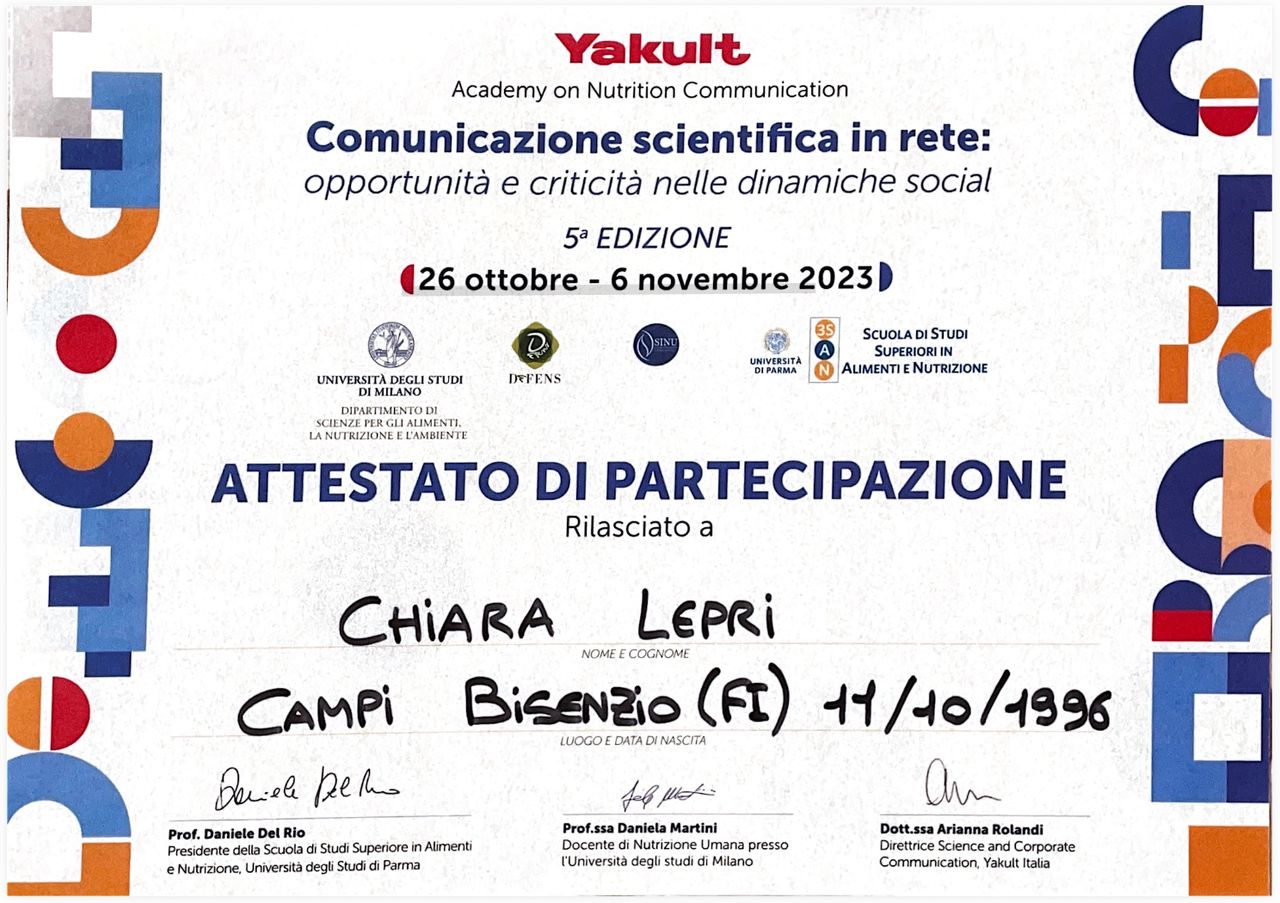 Mi sono laureata in Biologia Molecolare e Applicata (Curriculum Biosanitario e della Nutrizione) all'Università degli Studi di Firenze. A gennaio 2025 sono diventata Antropometrista ISAK di Livello 1. Mi piace avere un approccio semplice ed efficace alla nutrizione, che è una materia in continua evoluzione, in cui si deve rimanere al passo e aggiornati. Anche per questo, al momento sto frequentando l'ultimo anno della Scuola di Specializzazione in Scienza dell'Alimentazione a Siena e contemporaneamente svolgo il dottorato in Scienze Biomediche.