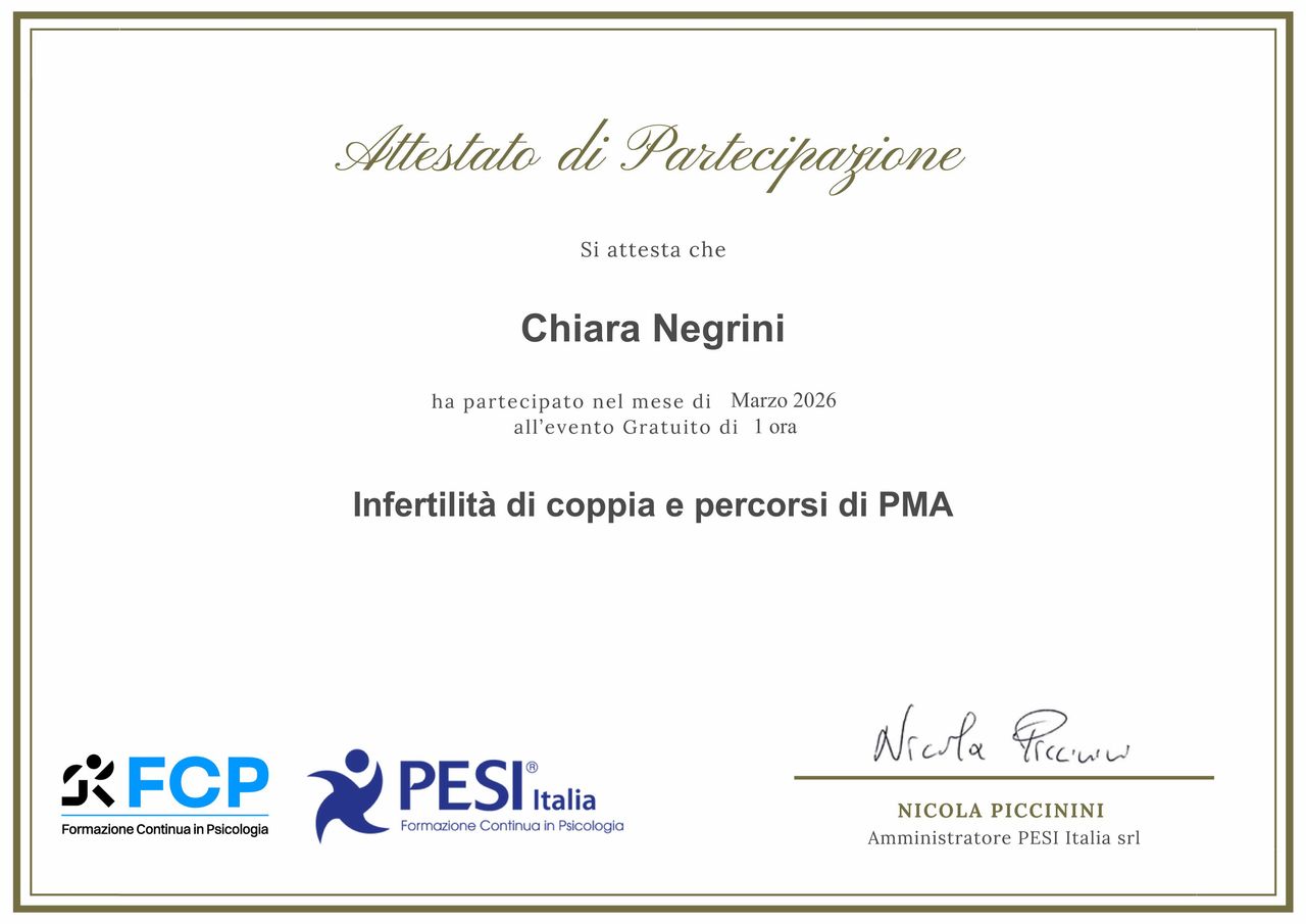 A.L., la ringrazio di cuore per le sue parole e per aver condiviso la sua esperienza. Il suo percorso e la sua fiducia sono stati preziosi e sono grata di aver avuto la possibilità di accompagnarla in un momento così delicato.