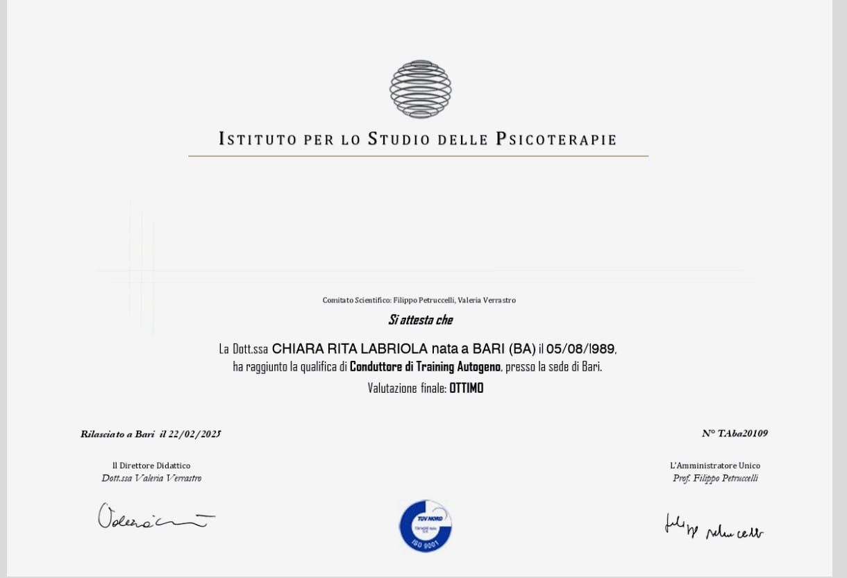 Sono psicologa clinica con un approccio integrato che unisce diverse competenze e tecniche terapeutiche, specializzanda in psicoterapia strategica breve e in sessuologia. Conduco il Training Autogeno e il R.A.T., strumenti che aiutano a rilassarsi, gestire lo stress e potenziare le proprie risorse interne. Lavoro anche con l’ipnosi Ericksoniana e regressiva, per esplorare in profondità emozioni, esperienze passate e schemi comportamentali e favorire cambiamenti duraturi.