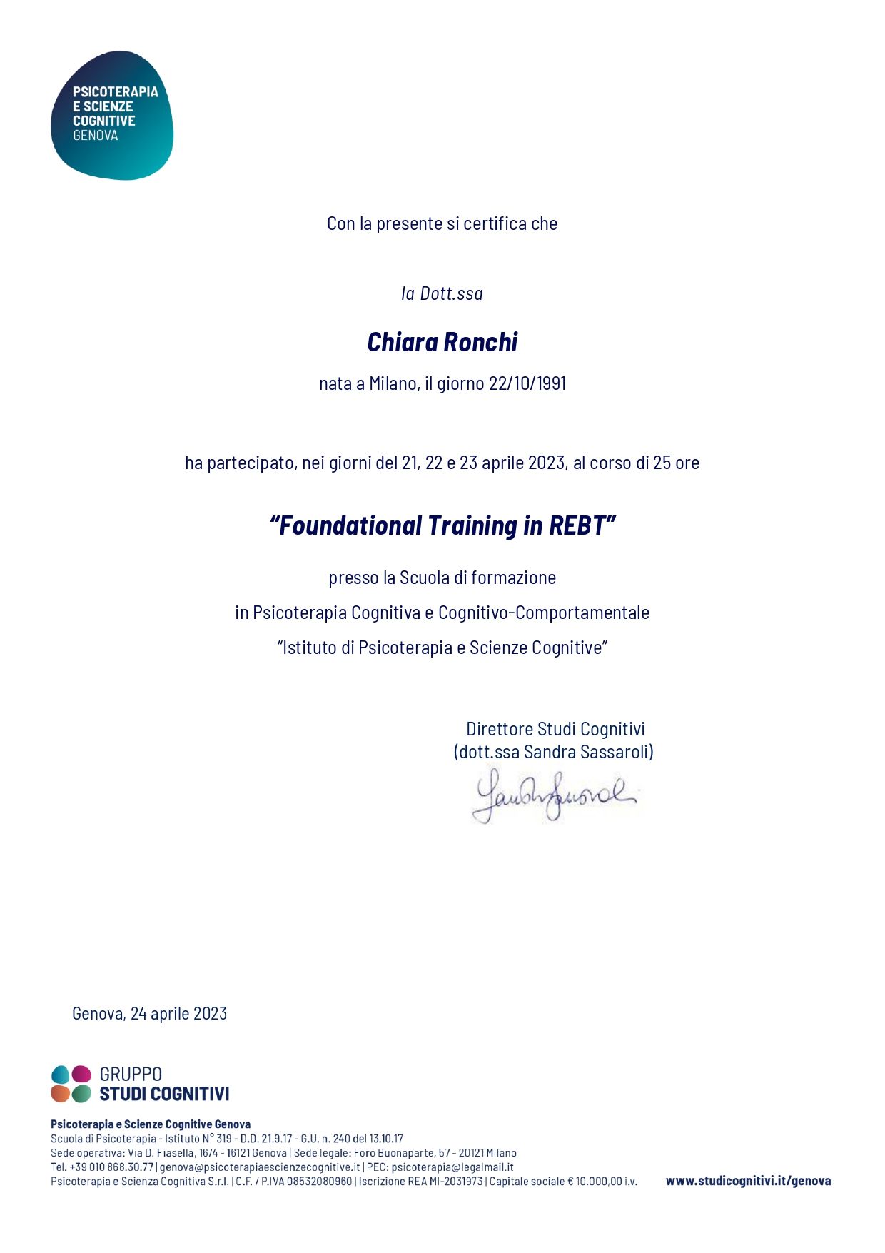Dott.ssa Chiara Ronchi