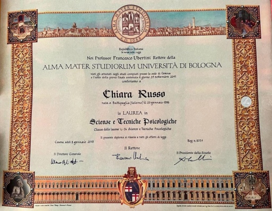 Sono Chiara Russo, Psicologa Clinica, e Psicoterapeuta i.f. presso la scuola Noûs di Milano, a indirizzo cognitivo-costruttivista e orientamento mindfulness.