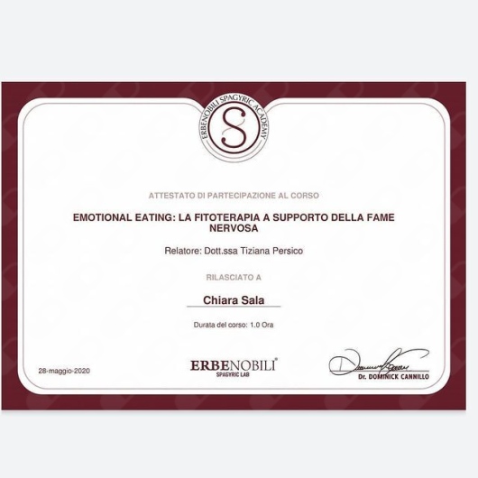 La dottoressa Sala è molto preparata e soprattutto empatica. Con lei mi sto riscoprendo. Sto imparando ad ascoltare il mio corpo e ciò mi sta aiutando anche nell’acquisizione di un regime non solo nutrizionale, ma anche di vita, sano e in linea con i miei bisogni.