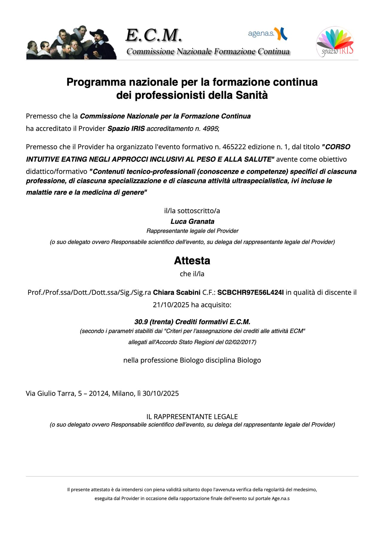 Dott.ssa Chiara Scabini - Biologa Nutrizionista.