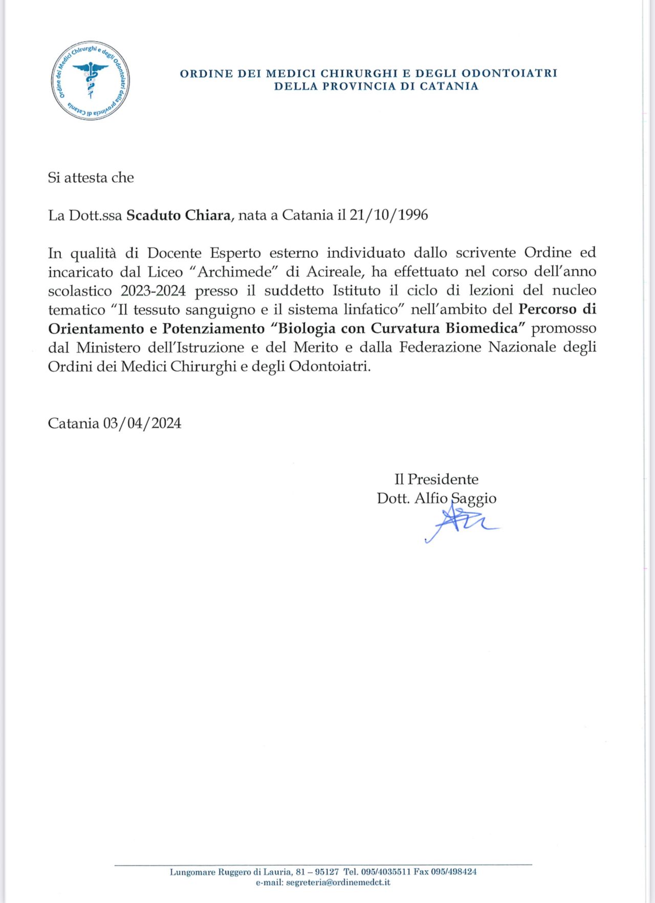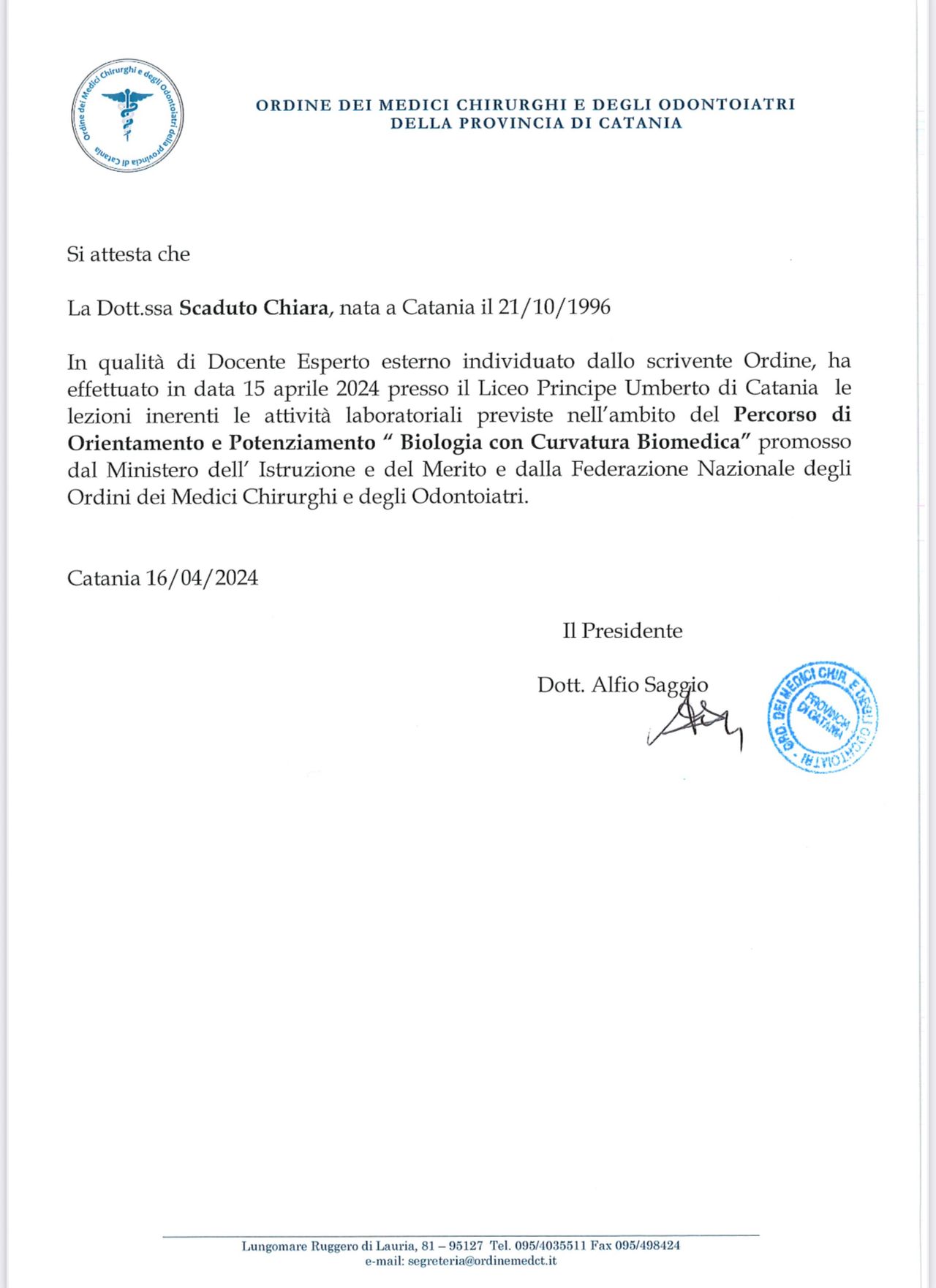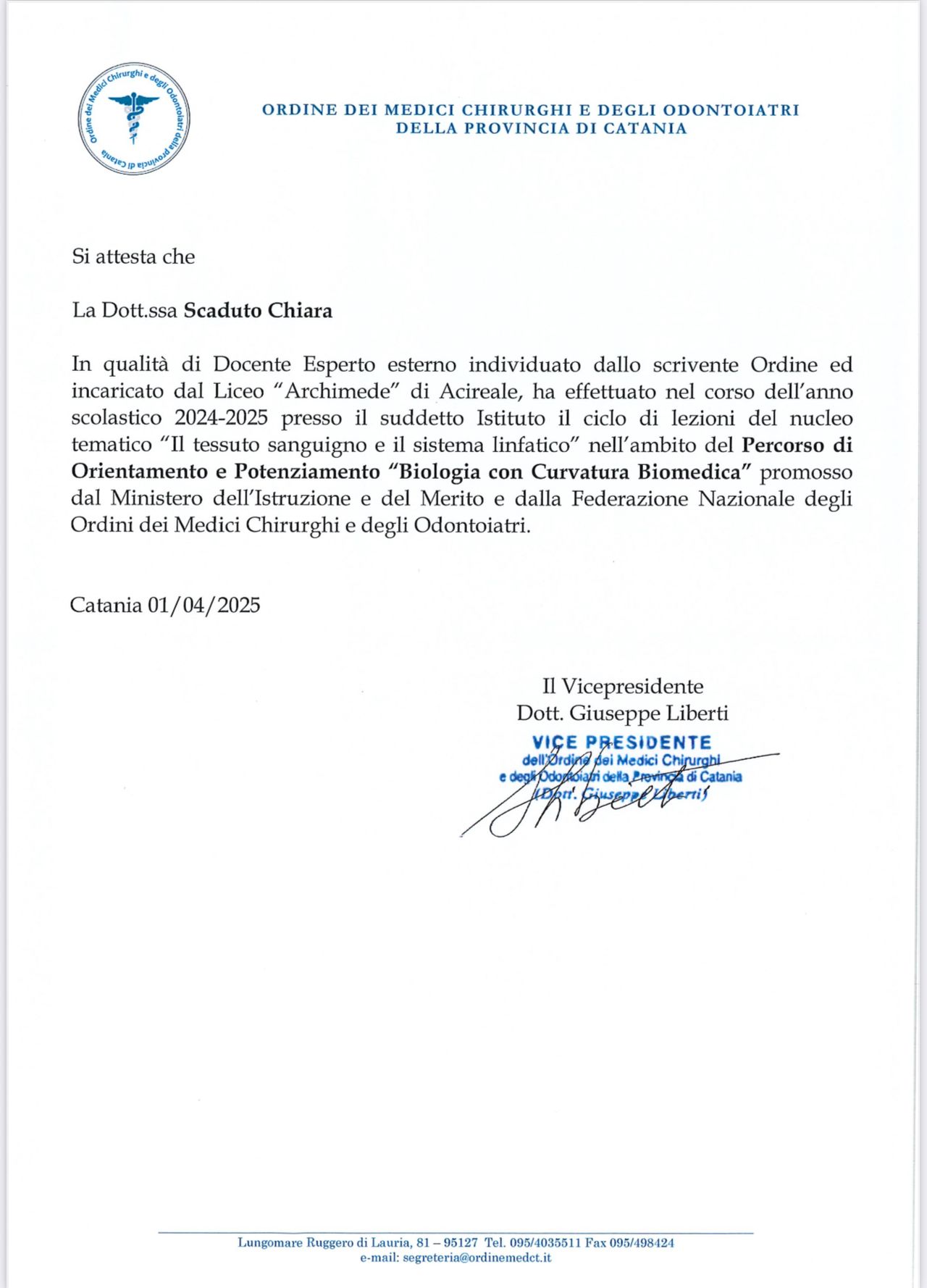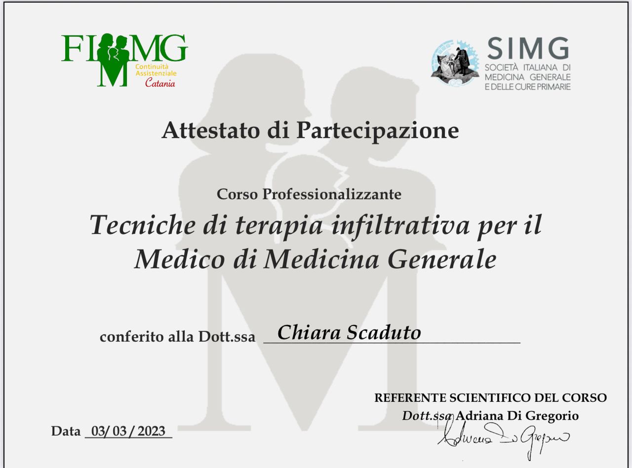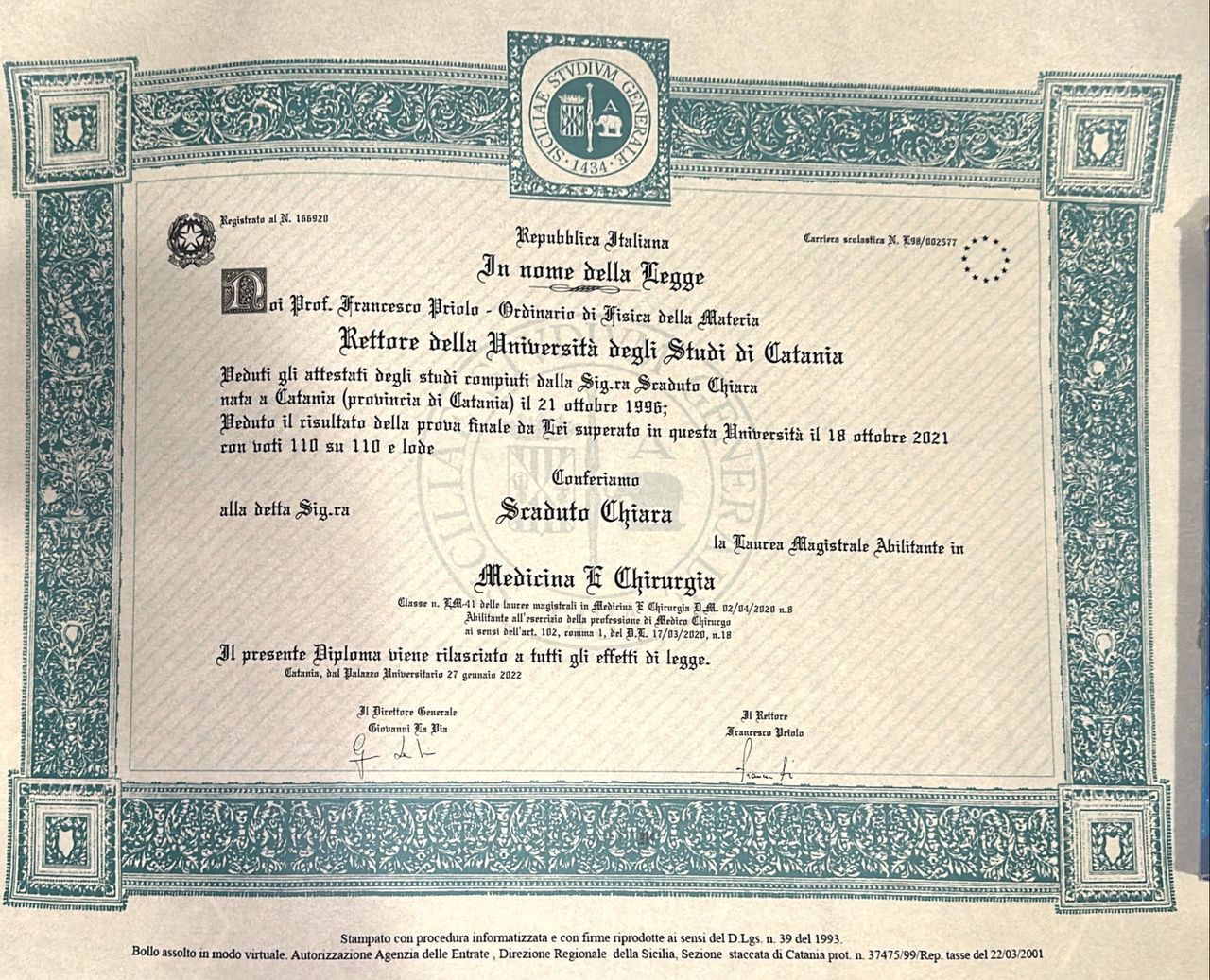 Mi chiamo Chiara Scaduto, sono un medico di medicina generale con diversi anni di esperienza maturata lavorando fianco a fianco con professionisti di grande valore. Dopo anni di collaborazione in diversi studi ho scelto di aprire il mio ambulatorio ad Acireale dove accolgo pazienti con un approccio empatico e attento all’ascolto.