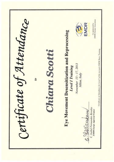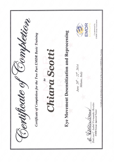 Ho una formazione specifica nella tecnica EMDR (Eye Movement Desensitization and Reprocessing), avendo conseguito I e II livello.