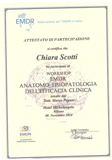Abbiamo sperimentato anche la tecnica dell’EMDR su tematiche di difficile dialogo, affrontando e superando alcune personali difficoltà e problemi caratteriali.• Dott.ssa Chiara Scotti Psicologa - Psicoterapeuta • psicoterapia individuale •