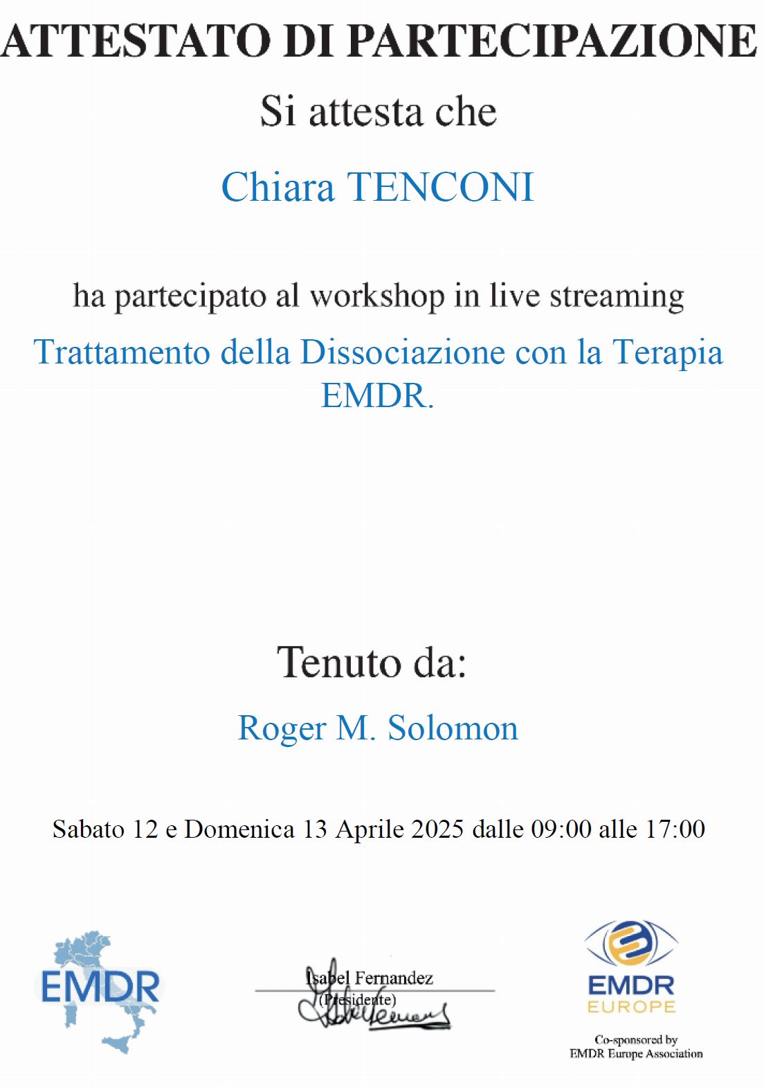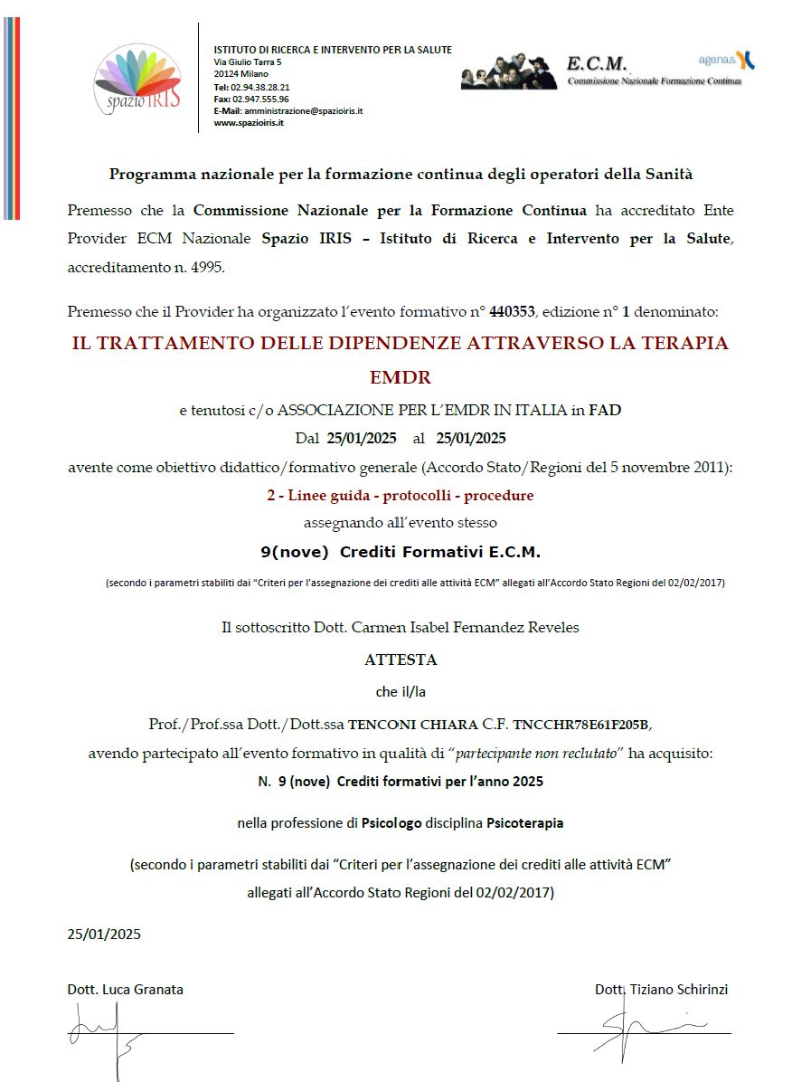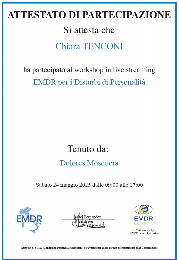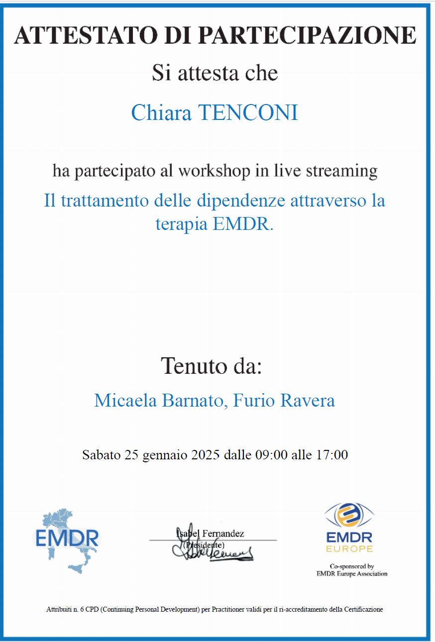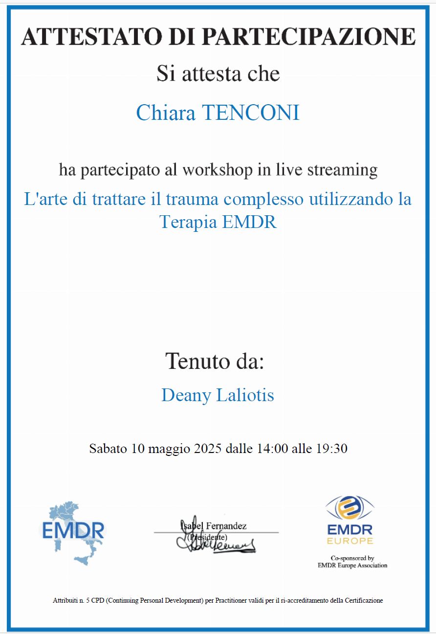 La dottoressa Tenconi è una professionista seria e scrupolosa• Studio privato • EMDR (Psicoterapia dei disturbi post-traumatici) •