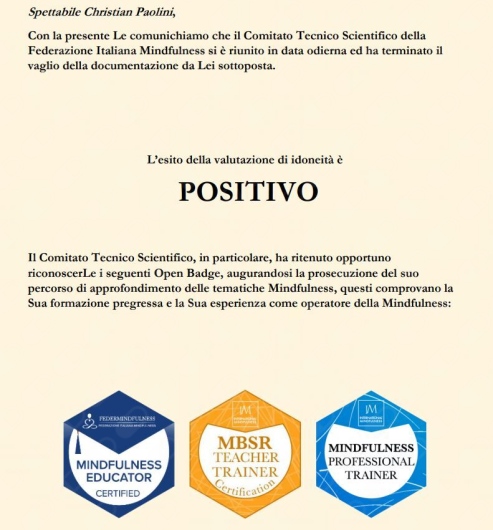 Christian è un professionista serio e affidabile. Abbiamo svolto insieme un percorso di mindfulness dettagliatamente rivolto a musicisti che intendono scoprire le proprie potenzialità sommerse e liberare il musicista interiore. In particolare il percorso è stato utile per imparare a raccogliersi, accogliersi e accettarsi senza giudizio.