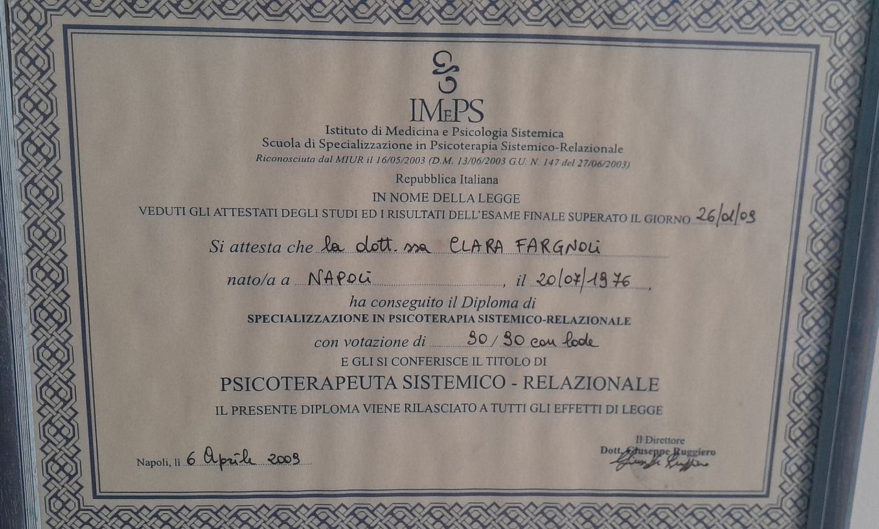 Oggi ho avuto la mia prima seduta con la Dottoressa, che, sin da subito si è mostrata accogliente, empatica e professionale. Mi sono sentita a mio agio nel raccontarmi. Mi ha colpito.la.sua professionalità e capacità di ascolto rassicurante.Continuerò il mio percorso con la Dottoressa.