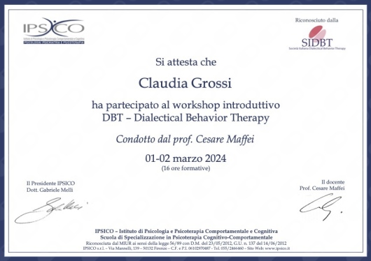 Grazie Claudia per avermi accolto e supportato con così tanta competenza. Mi sento molto meglio con me e con gli altri