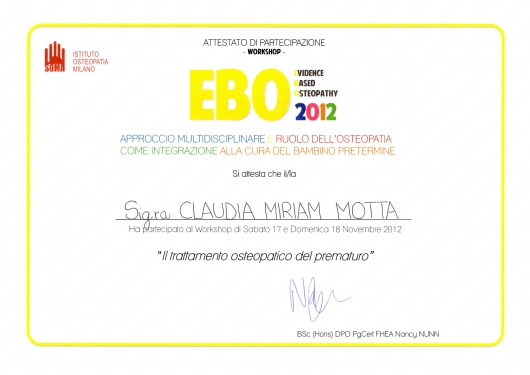 - Osteopata DO presso l’ospedale di Carate Brianza nel reparto di pediatria dal 2007-2013