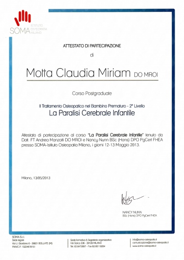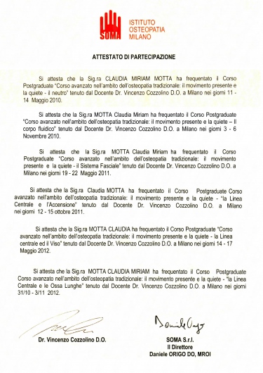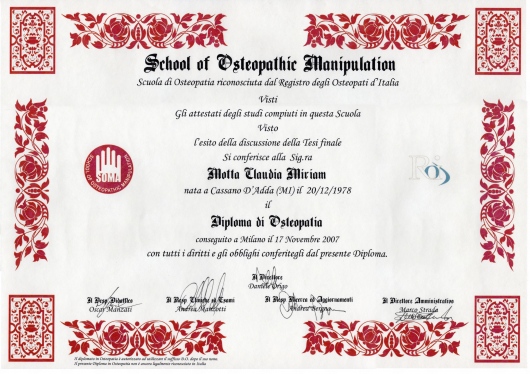 - Diploma in Osteopatia, SOMA, 2007