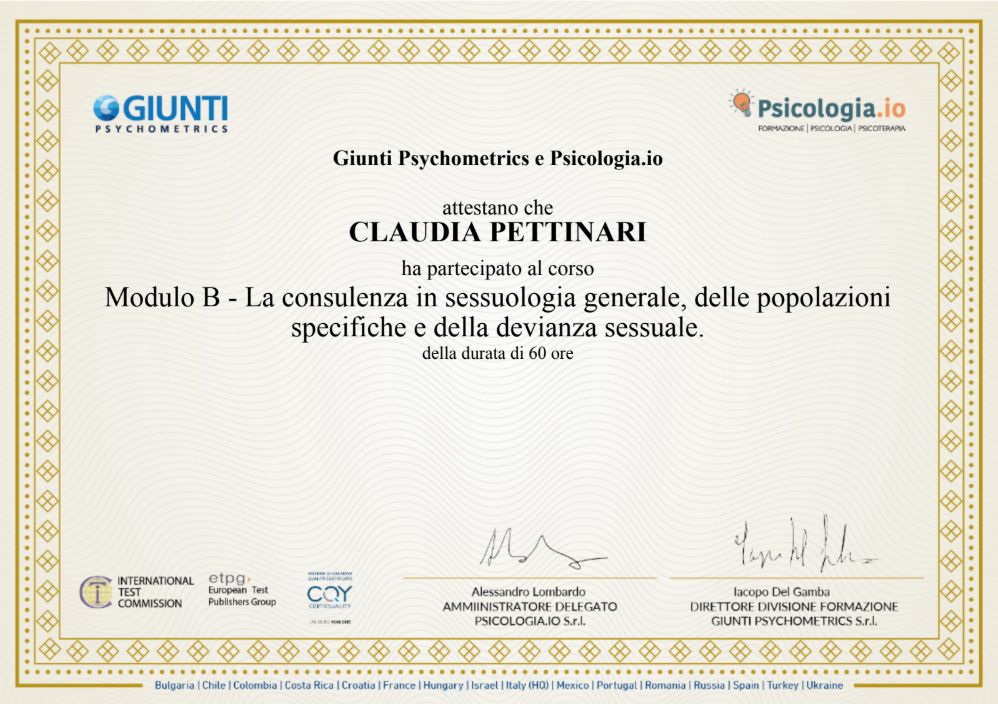 Ho avuto modo di collaborare con la Dott.ssa Pettinari e ho trovato una professionista preparata e competente. Nel suo lavoro l'empatia, l'attenzione e l'ascolto profondo sono qualità che la contraddistinguono.