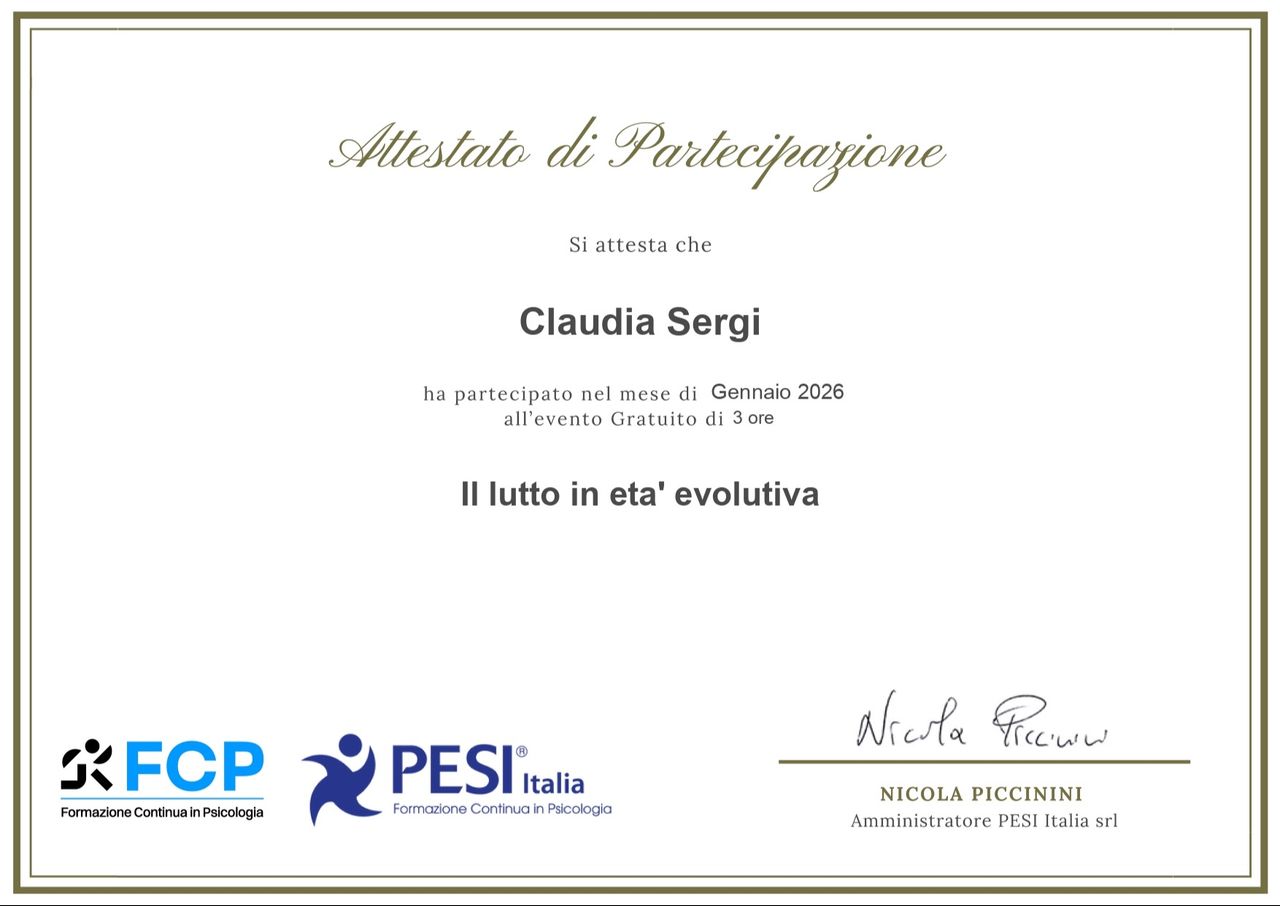 Sono costantemente impegnata in un percorso di formazione continua. Attualmente sto frequentando un master sugli strumenti sistemici DAN, che integra modalità digitali, analogiche e narrative nel lavoro clinico. Nel 2027 inizierò la scuola di psicoterapia sistemico-relazionale, in continuità con l’approccio utilizzato nel mio lavoro.