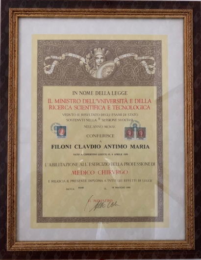 1990 – II sessione - Abilitazione all’esercizio professionale, Ordine dei Medici Chirurghi e Odontoiatri.