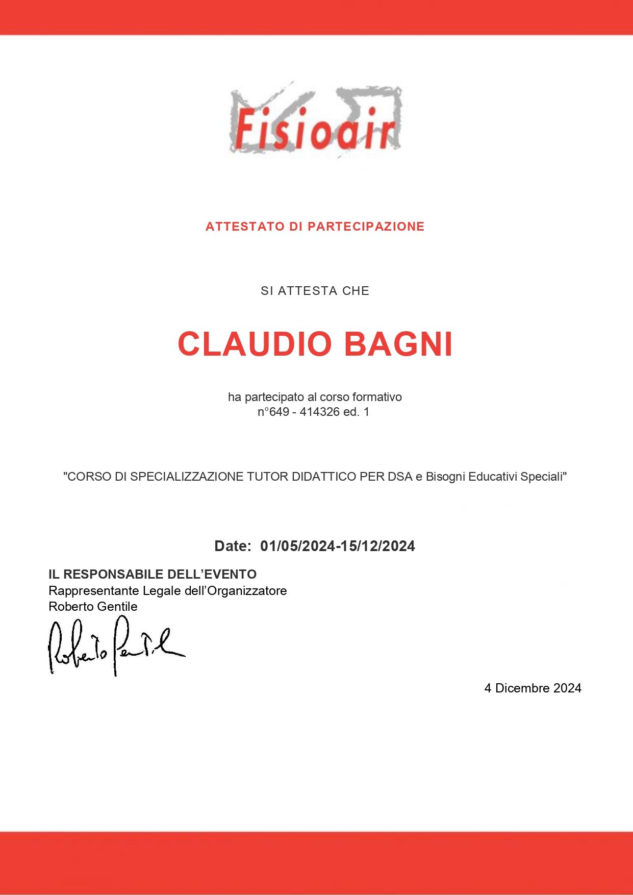 Hai avuto una visita con Dott. Claudio Bagni? Condividi quello che pensi. Grazie alla tua esperienza gli altri pazienti potranno scegliere il miglior dottore per loro.