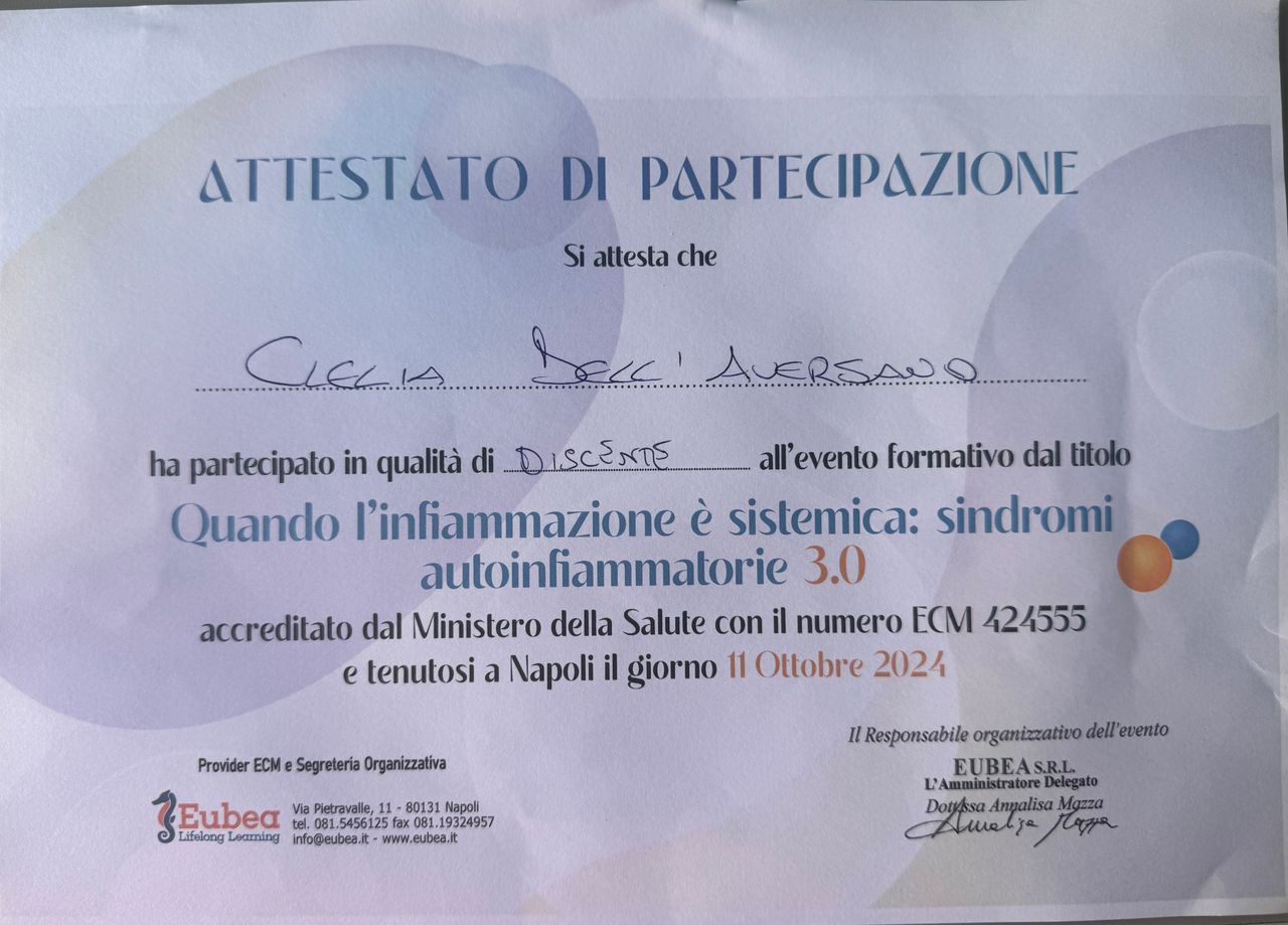 Ho contattato la Dottoressa Dell’Aversano per una visita a domicilio per mio figlio, da subito si è mostrata empatica con lui, mettendolo a proprio agio. Dopo una visita dettagliata, ci ha spiegato passo passo che cosa avesse il piccolino e cosa avremmo poi dovuto fare. La ricontatterò sicuramente in caso di necessità