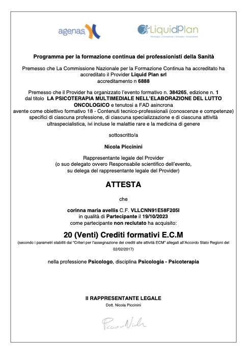Ho avuto la fortuna di incontrare la dott.ssa Corinna Avellis in un momento delicato della mia vita e posso dire con certezza che è stata una guida preziosa e competente. La sua professionalità si unisce a una grande umanità: sa ascoltare con attenzione autentica, senza mai giudicare, e riesce a cogliere anche ciò che non viene detto esplicitamente.