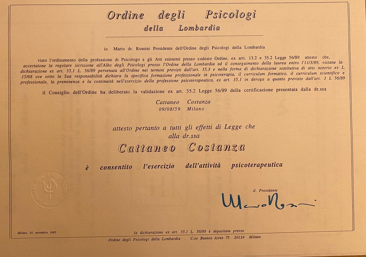 Ho conosciuto la dottoressa Cattaneo portando molte mie problematiche mai risolte… con grande attenzione, empatia e professionalità, in poche sedute mi sono sentita subito in pace con me stessa con il desiderio di andare fino in fondo ai miei problemi… per risolverli con Lei.